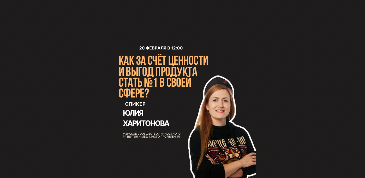 Выступление топового спикера на тему: "Как за счёт ценности и выгод продукта стать №1 в своей сфере"